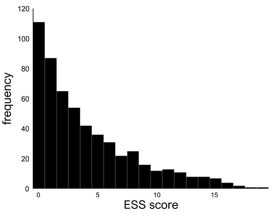 Distribution of ESS scores in all patients. The y-axis represents the number of patients.