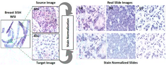 Normalization addresses the contrast variability in HER2-SISH images. We used the Macenko normalization algorithm [30], which falls under unsupervised normalization techniques: