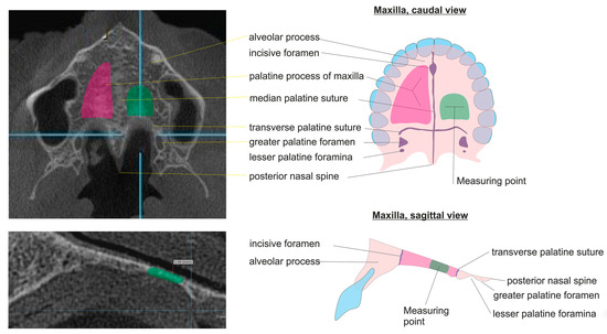 - Kildal, D.; Riether, T.; Blasenbrey, T.; Turhani, D.; Antoch, G.; Beer, M.; Geibel, M.-A. Thickness of the hard palate. Die Radiol. 2024, 64, 109–115. [Google Scholar] [CrossRef] [PubMed]
