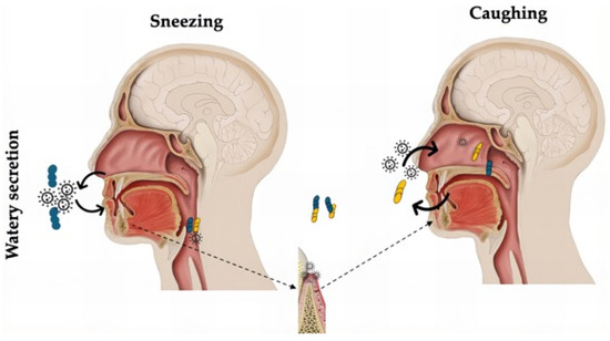 Based on these findings, we propose a potential biological mechanism involving a cyclical supply of pro-inflammatory mediators to the upper respiratory tract and oral cavity. Patients with COVID-19 and Self-RPD+ may experience sneezing, which leads to the dissemination of contaminated saliva and nasal secretions, promoting an increased SARS-CoV-2 viral load and the accumulation of soluble IL-6 (Figure 3). This hypothesis is further supported by our observation that the healthy subjects presented the lowest IL-6 levels.