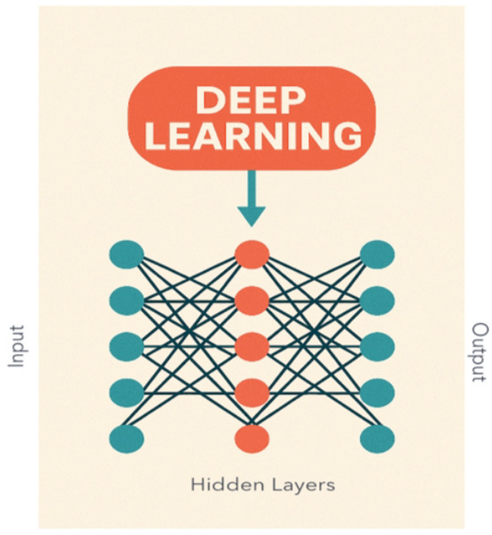 RL is a type of ML where an agent (inspired by behavioral psychology) takes actions (what the agent can do) in the environment (where the agent operates), receives rewards (positive feedback) or penalties based on those actions, and can learn to maximize total rewards over time. RL algorithms are the core technique at the heart of robotic surgery: RL is already proving valuable in supporting, improving, and personalizing surgical robotics [34,44,45,55,56,57]. DL, a subtype of ML, handles complex neural networks (organized in multiple layers, which allows them to perform complex tasks), based on the biological functioning of the human brain, creating a relation between the input variables and the outcomes of interest (Figure 3). DL algorithms include Convolutional Neural Networks (CNNs), deep neural networks (DNNs), recurrent neural networks (RNNs), and deep belief networks (DBNs) [39,58]. DNNs use a hierarchy of signals in which higher-level features are obtained by combining lower-level ones. CNNs, a subtype of DNN, resemble neurobiological processes, being responsible for image analysis, through the connectivity pattern between neurons (abnormality detection, disease classification, and computer-aided diagnosis). CNNs have superior performance in object detection and recognition, being less dependent on human effort [20,21].