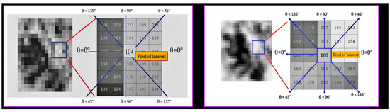 Figure 4, directionality was evaluated utilizing a central pixel and its surrounding neighbors at defined angles within both the sinus and tuberosity regions. This multidirectional approach facilitated a robust comparison between the grafted and native bone regions, yielding valuable insights into the alterations in textural patterns following sinus floor elevation with xenograft material.