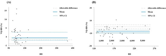- Giavarina, D. Understanding Bland Altman analysis. Biochem. Med. 2015, 25, 141–151. [Google Scholar] [CrossRef] [PubMed]