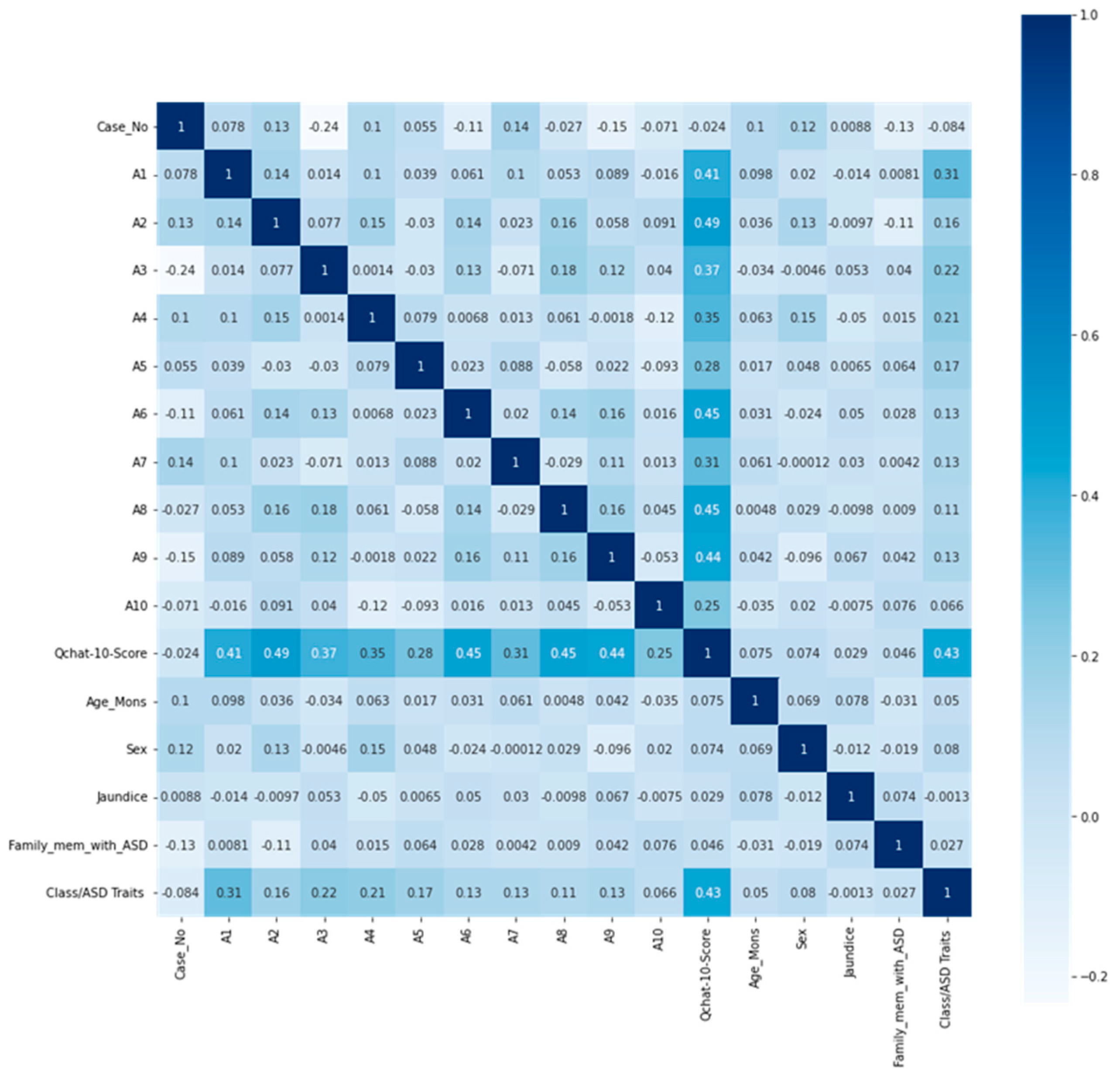 | Class/ASD Traits | Boolean | The class label represents whether ASD-related traits are observed, with a value of ‘0’ indicating no traits present and ‘1’ indicating that such traits are present |