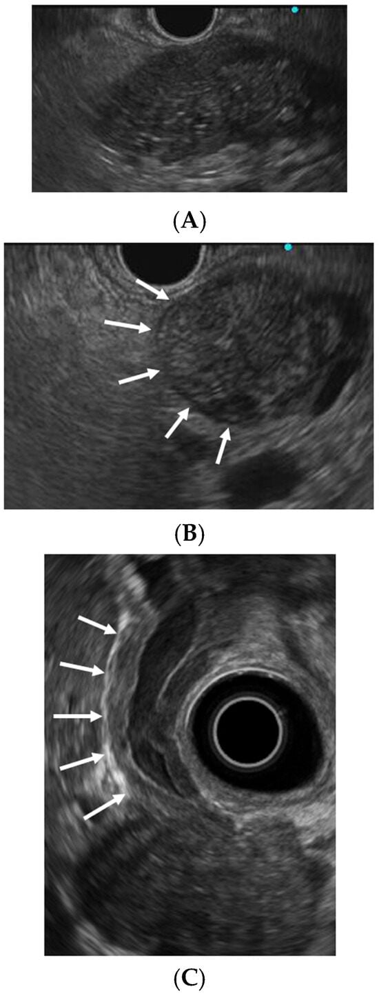 - Zhang, S.Y.; Feng, Y.L.; Zou, L.; Wu, X.; Guo, T.; Jiang, Q.W.; Wang, Q.; Lai, Y.M.; Tang, S.J.; Yang, A.M. Endoscopic ultrasound features of autoimmune pancreatitis: The typical findings and chronic pancreatitis changes. World J. Gastroenterol. 2021, 27, 7376–7386. [Google Scholar] [CrossRef]