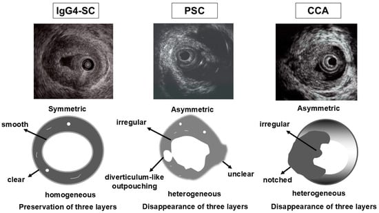 - Naitoh, I.; Nakazawa, T.; Hayashi, K.; Miyabe, K.; Shimizu, S.; Kondo, H.; Nishi, Y.; Yoshida, M.; Umemura, S.; Hori, Y.; et al. Comparison of intraductal ultrasonography findings between primary sclerosing cholangitis and IgG4-related sclerosing cholangitis. J. Gastroenterol. Hepatol. 2015, 30, 1104–1109. [Google Scholar] [CrossRef]
