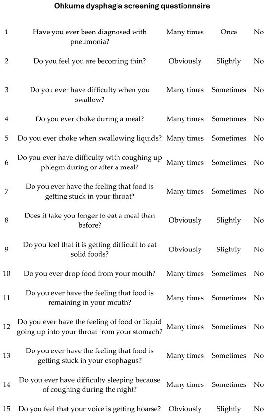 Contents of the Ohkuma dysphagia screening questionnaire.