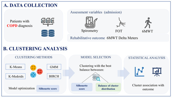 Building on this rationale, unsupervised clustering is particularly suited to explore the underlying structure of the COPD population and identify patient subgroups with distinct recovery trajectories [14,15,16]. Recent applications of unsupervised clustering in COPD have demonstrated its potential and further support its use in this clinical context [17,18]. Despite the promise of clustering approaches, challenges remain in ensuring their reproducibility and clinical applicability. Variability in patient cohorts, data sources, and clustering methodologies across studies can lead to inconsistent results, raising concerns about the robustness of identified phenotypes.