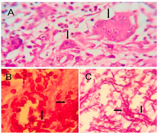 - Sowmya, S.V.; Augustine, D.; Hemanth, B.; Prathab, A.G.; Alamoudi, A.; Bahammam, H.A.; Bahammam, S.A.; Bahammam, M.A.; Haragannavar, V.C.; Prabhu, S.; et al. Alternate Special Stains for the Detection of Mycotic Organisms in Oral Cyto-Smears-A Histomorphometric Study. Microorganisms 2022, 10, 1226. [Google Scholar] [CrossRef]
