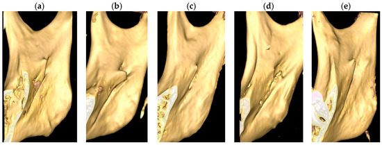 All the CBCT scans were acquired using i-CAT Vision System by Imaging Sciences International Inc. (Hatfield, PA, USA), operating at 120 kVp, 5–8 mA with an exposure time of 20 s. Only CBCTs with a field of view of 16 cm in diameter and 13 cm in height with a 0.25 mm voxel size were included. All images were taken by the same radiographer according to a standard protocol and patient positioning. The original slice image CBCT data acquired from the proprietary manufacturer acquisition software, i-Cat Vision (Imaging Sciences International Inc., Hatfield, PA, USA), was extracted and saved in Digital Imaging and Communications in Medicine (DICOM) multi-file format and exported to 3D Slicer software (3D slicer project by Brigham and Women’s Hospital, BWH, Inc. supported by NA-MIC, NAC, BIRN, NCIGT, and the Slicer Community, Boston, MA, USA). The DICOM data were then converted and reconstructed into 3-dimensional (3D) surface rendered volumetric images of the mandible using the 3D Slicer software Version 5.0.2 (https://www.slicer.org).