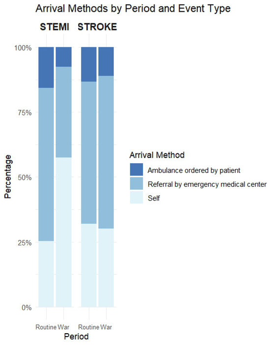 - Zeldetz, V.; Shashar, S.; Cafri, C.; Shamia, D.; Slutsky, T.; Abu Abed, N.; Schwarzfuchs, D. STEMI in Times of Crisis: Comparative Analysis During Pandemic and War. J. Clin. Med. 2025, 14, 1720. [Google Scholar] [CrossRef]