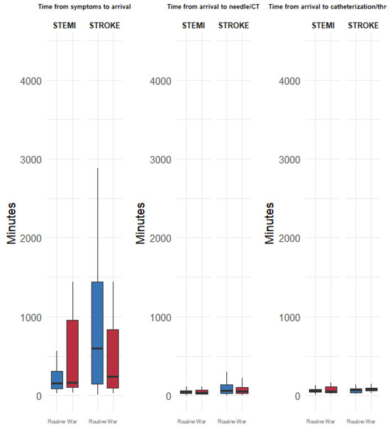 - Galper, A.; Magnezi, R.; Ekka Zohar, A.; Oberman, B.; Zimlichman, E. COVID-19 lockdown impact on quality of treatment and outcomes of STEMI and stroke patients in a large tertiary medical center: An observational study. Int. J. Qual. Health Care 2022, 34, mzac074. Available online: https://pubmed.ncbi.nlm.nih.gov/36103366/ (accessed on 1 May 2025). [CrossRef]