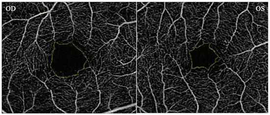 - Çiloğlu, E.; Unal, F.; Sukgen, E.A.; Kocluk, Y.; Dogan, N.C. Evaluation of Foveal Avascular Zone and Capillary Plexus in Smokers Using Optical Coherence Tomography Angiography. J. Curr. Ophthalmol. 2020, 32, 53–57. [Google Scholar] [CrossRef] [PubMed]
