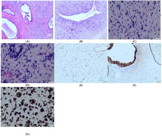Macroscopic examination revealed a fleshy, multinodular, pearly-surfaced polypoid mass with extensive internal hemorrhagic areas (see Figure 8A–D).