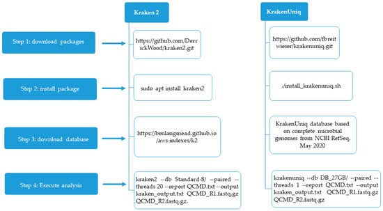 The different steps for configuring Kraken 2 and KrakenUniq.