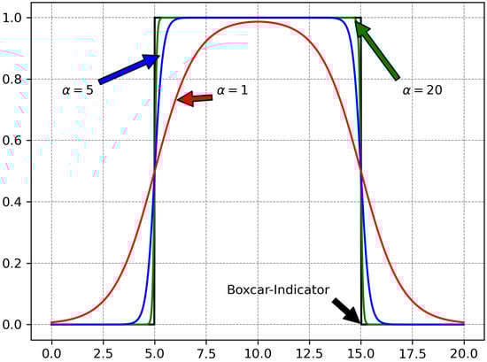 where is a parameter. This is a particular case of the generalized sigmoid. The larger the value of , the more accurately approximates the step-like indicator function. The sigmoid function is continuous, therefore it is smoothing the discontinuities.