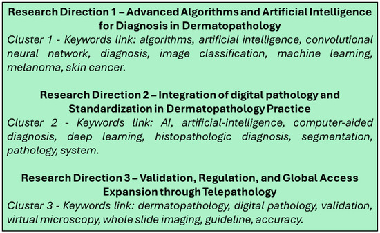 Based on these three clusters we established the three research directions for digital pathology and artificial intelligence in dermatopathology, as shown in Figure 6.