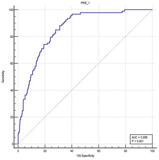 An ROC analysis was performed to evaluate the classification performance of the logistic regression model developed in the study. The predicted probability values generated for each case were compared with the actual ROSC outcomes. The analysis revealed that the model had an AUC value of 0.856, with a sensitivity of 88.2% and a specificity of 69.0% (Figure 1).