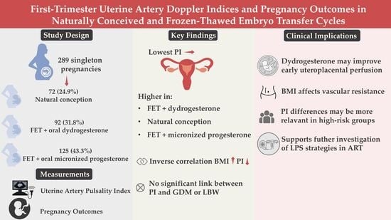 First-Trimester Uterine Artery Doppler Indices and Pregnancy Outcomes in Naturally Conceived and Frozen–Thawed Embryo Transfer Cycles