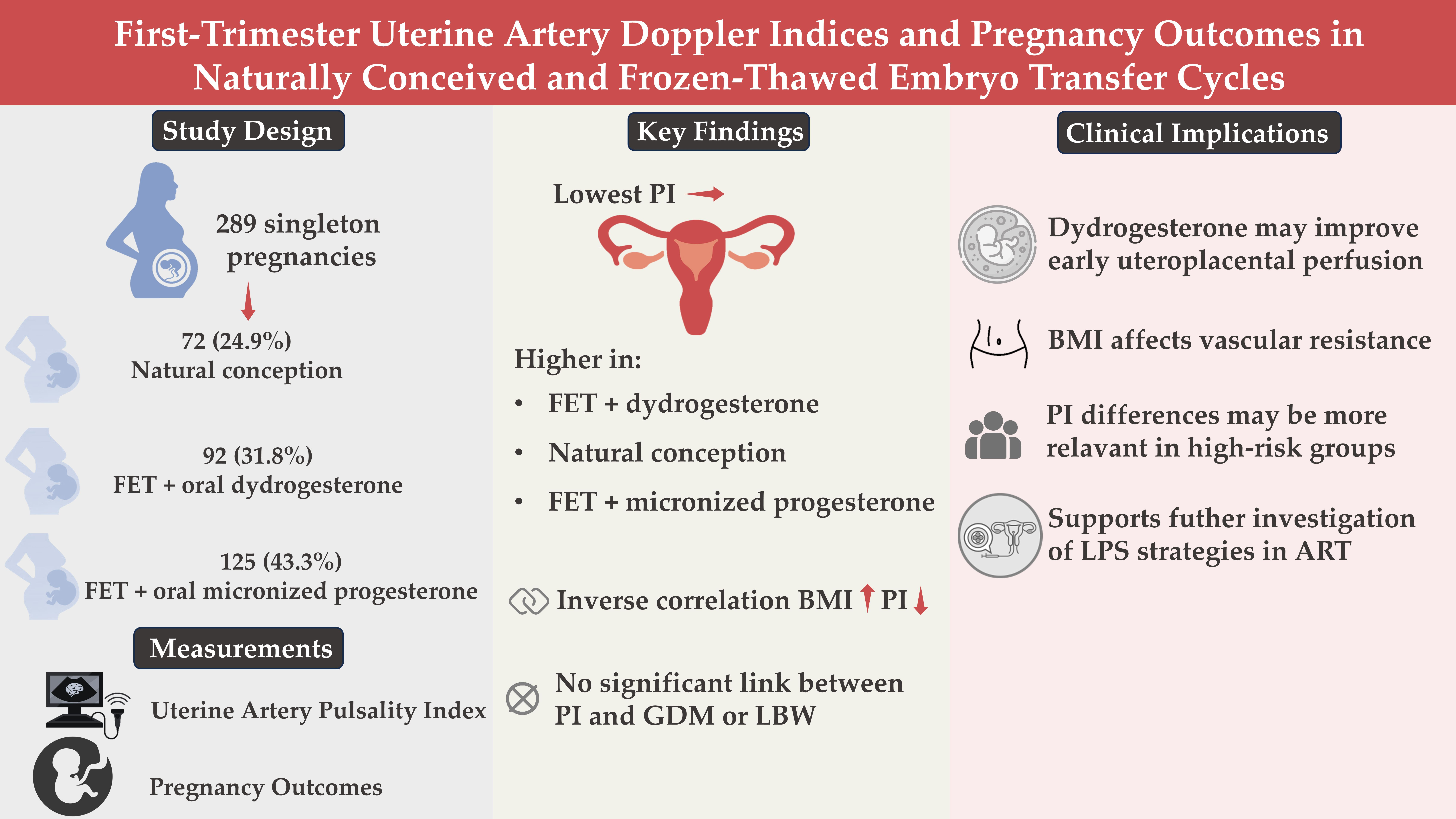 Aygün, E.G.; Kahraman, E. First-Trimester Uterine Artery Doppler Indices and Pregnancy Outcomes in Naturally Conceived and Frozen–Thawed Embryo Transfer Cycles. Diagnostics 2025, 15, 2223. https://doi.org/10.3390/diagnostics15172223