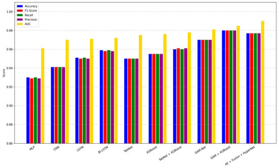 The ablation study further confirms that each component plays a substantial role in achieving this high performance. Notably, excluding the autoencoder led to a ~3% drop in accuracy, and removing the HyperNetwork or GAMI components substantially impaired the model’s sensitivity and AUC. This validates our architectural decisions and emphasizes the synergy between explainability, fusion, and adaptive classification.