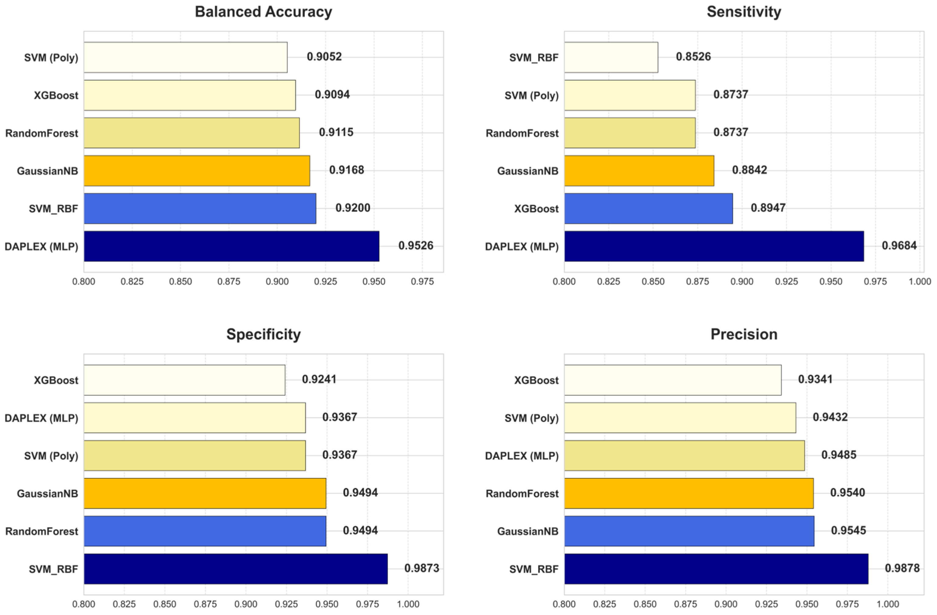 85]. The ability of the DAPLEX consensus mechanism to identify and prioritize this clinically validated set of multi-domain predictors underscores its potential to mimic expert diagnostic reasoning.