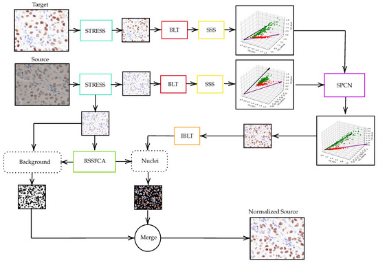 3. Macenko, M.; Niethammer, M.; Marron, J.S.; Borland, D.; Woosley, J.T.; Guan, X.; Schmitt, C.; Thomas, N.E. A method for normalizing histology slides for quantitative analysis. In Proceedings of the 2009 IEEE International Symposium on Biomedical Imaging: From Nano to Macro, Boston, MA, USA, 28 June 2009–1 July 2009; pp. 1107–1110. [Google Scholar]