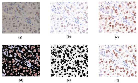 6. Vahadane, A.; Peng, T.; Sethi, A.; Albarqouni, S.; Wang, L.; Baust, M.; Steiger, K.; Schlitter, A.M.; Esposito, I.; Navab, N. Structure-Preserving Color Normalization and Sparse Stain Separation for Histological Images. IEEE Trans. Med Imaging 2016, 35, 1962–1971. [Google Scholar] [CrossRef] [PubMed]