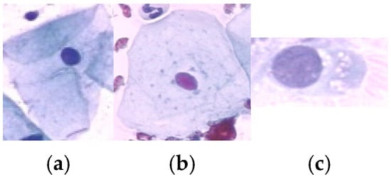 Sample data of Normal class: (a) Superficial Squamous Epithelia, (b) Intermediate Squamous Epithelia and (c) Columnar Epithelia.
