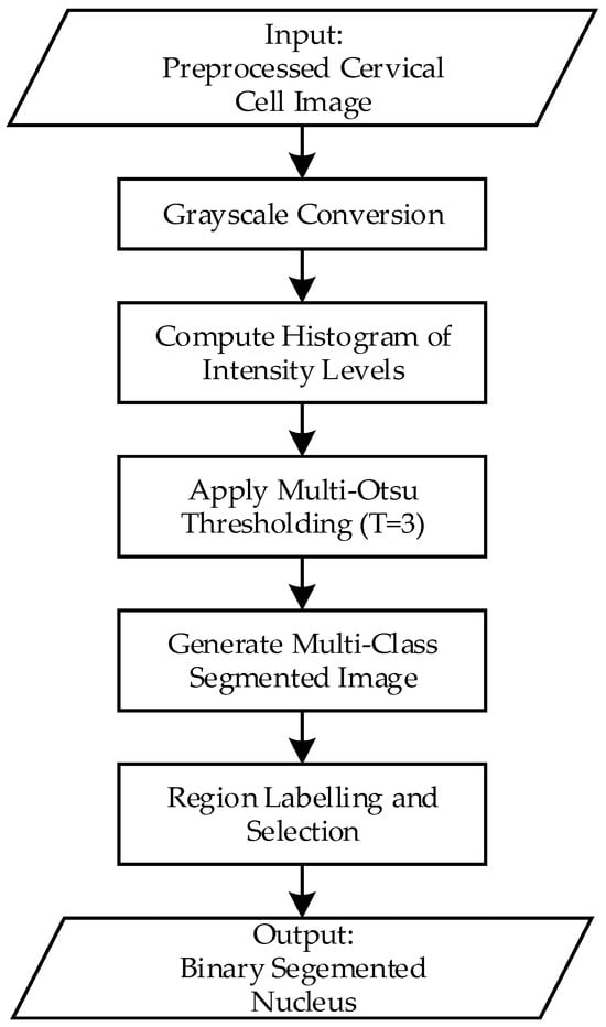 Flowchart of the multi-Otsu thresholding process for cervical nucleus segmentation.
