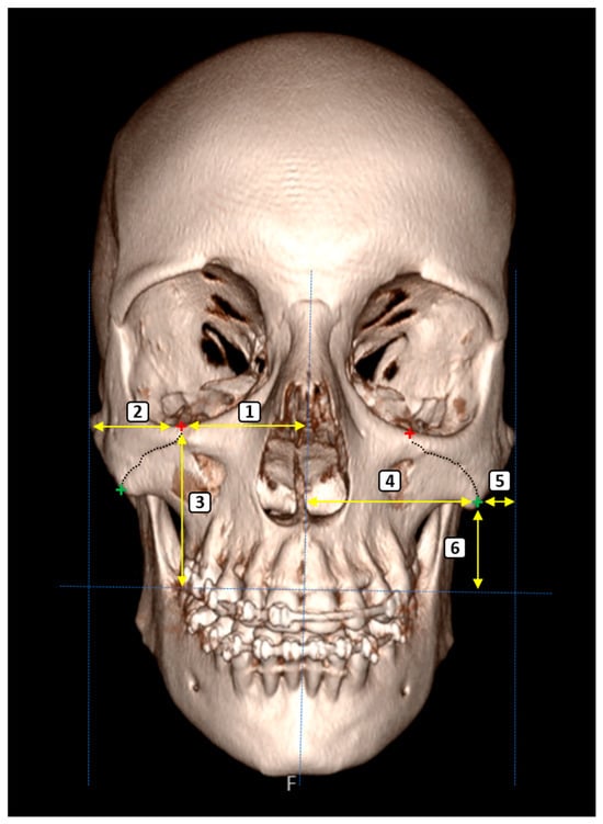 - Franke, A.; Matschke, J.B.; Bučkova, M.; Rahrisch, L.; Lauer, G.; Leonhardt, H. Symmetry-based analysis after surgical treatment of zygomaticomaxillary complex fractures using intraoperative cone-beam computed tomography: A retrospective case-control study. Sci. Rep. 2025, 15, 5898. [Google Scholar] [CrossRef]