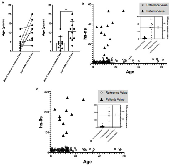 - Ozkinay, F.; Emecen, D.A.; Kose, M.; Isik, E.; Bozaci, A.E.; Canda, E.; Tuysuz, B.; Zubarioglu, T.; Atik, T.; Onay, H. Clinical and genetic features of 13 patients with mucopolysaccharidosis type IIIB: Description of two novel NAGLU gene mutations. Mol. Genet. Metab. Rep. 2021, 27, 100732. [Google Scholar]