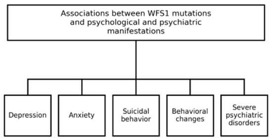- Swift, M.; Gorman Swift, R. Psychiatric disorders and mutations at the Wolfram syndrome locus. Biol. Psychiatry 2000, 47, 787–793. [Google Scholar] [CrossRef] [PubMed]