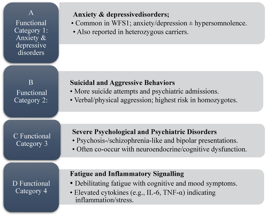 - Sequeira, A.; Kim, C.; Seguin, M.; Lesage, A.; Chawky, N.; Desautels, A.; Tousignant, M.; Vanier, C.; Lipp, O.; Benkelfat, C. Wolfram syndrome and suicide: Evidence for a role of WFS1 in suicidal and impulsive behavior. Am. J. Med. Genet. B Neuropsychiatr. Genet 2003, 119, 108–113. [Google Scholar] [CrossRef]