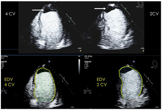 - Igata, S.; Kraushaar, M.; Strachan, M.; Ma, J.I.; Nishimura, M.; Raisinghani, A.; Blanchard, D.G.; DeMaria, A.N. Systematic Assessment of the Impact of Ultrasound-Enhancing Agents upon Measurements of Cardiac Size and Function by Echocardiography. J. Am. Soc. Echocardiogr. 2020, 33, 313–321. [Google Scholar] [CrossRef]