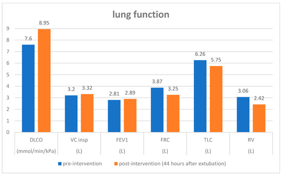 Lung function values of case 2 before and 44 h after USgTTcNB under OLF.