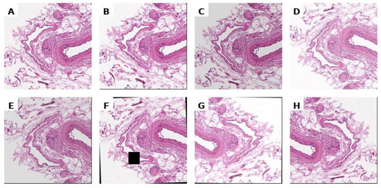 Unnormalized histological image (A) and its arbitrary augmentations (B–H).