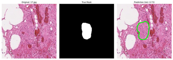 In addition, we have shown that scaling input images from 1024 × 1024 to 224 × 224 pixels significantly speeds up both the training and mask prediction stages without compromising segmentation quality. This approach can serve as an effective tool for optimising computational resources and is recommended for implementation when developing and training your own histological image segmentation models.
