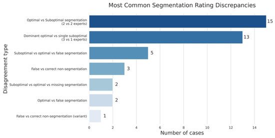 The results of the expert validation revealed significant discrepancies in the assessment of segmentation quality. Only in 55% of cases was there complete agreement among all experts, while in 45% of cases their opinions differed. The most frequent source of disagreement (28 out of 45 cases, or 62% of discrepancies) was the subjective boundary between optimal and suboptimal segmentation of nerve fibres.