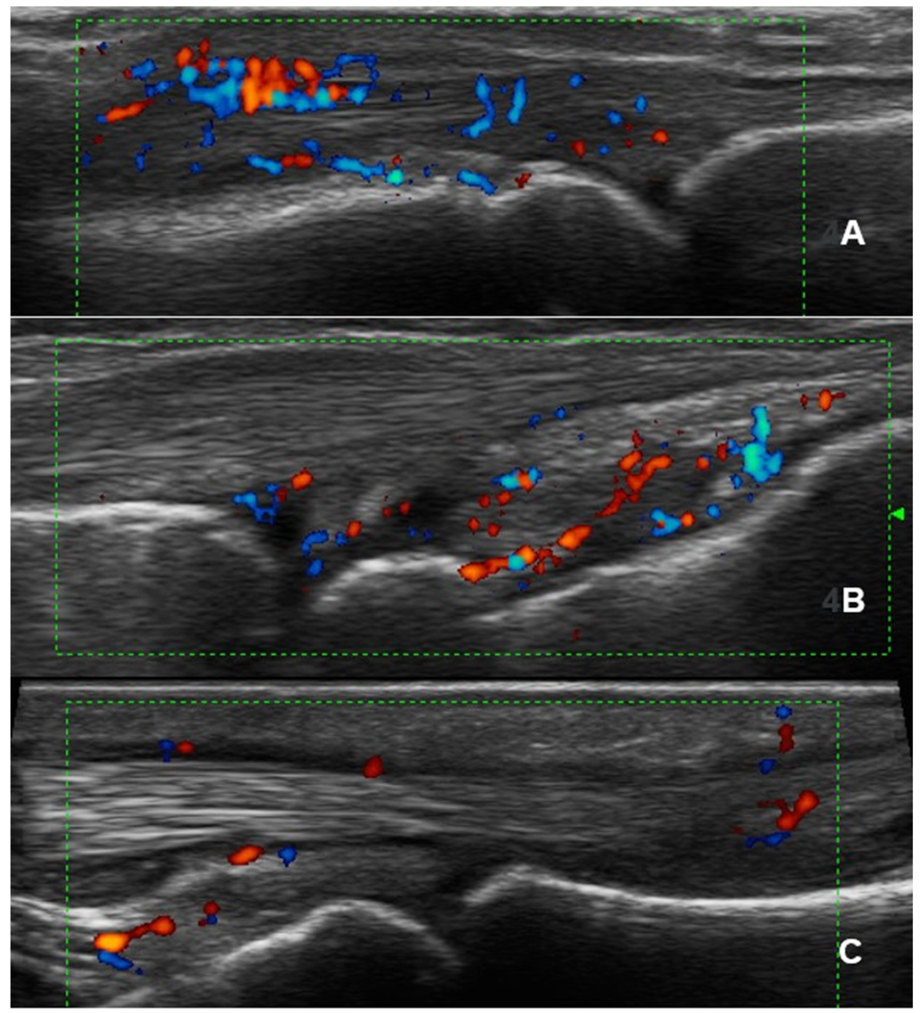 - Bruyn, G.A.; Iagnocco, A.; Naredo, E.; Balint, P.V.; Gutierrez, M.; Hammer, H.B.; Collado, P.; Filippou, G.; Schmidt, W.A.; Jousse-Joulin, S.; et al. OMERACT definitions for ultrasonographic pathologies and elementary lesions of rheumatic disorders 15 years on. J. Rheumatol. 2019, 46, 1388–1393. [Google Scholar] [CrossRef]