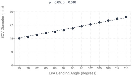 Correlation between LPA bending angle and sinus of Valsalva diameter.