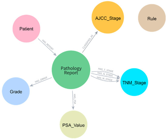 Neo4j (Neo4j, Inc., San Mateo, CA, USA, v 5.28.1) was employed to systematically model the relationships between the extracted pathological variables and their AJCC classifications, yielding a knowledge graph that supports rule-based staging classification and automated data consistency validation. The constructed knowledge graph processes pathology report data through a structured pipeline and exports both classification results and consistency errors to a single Excel file.