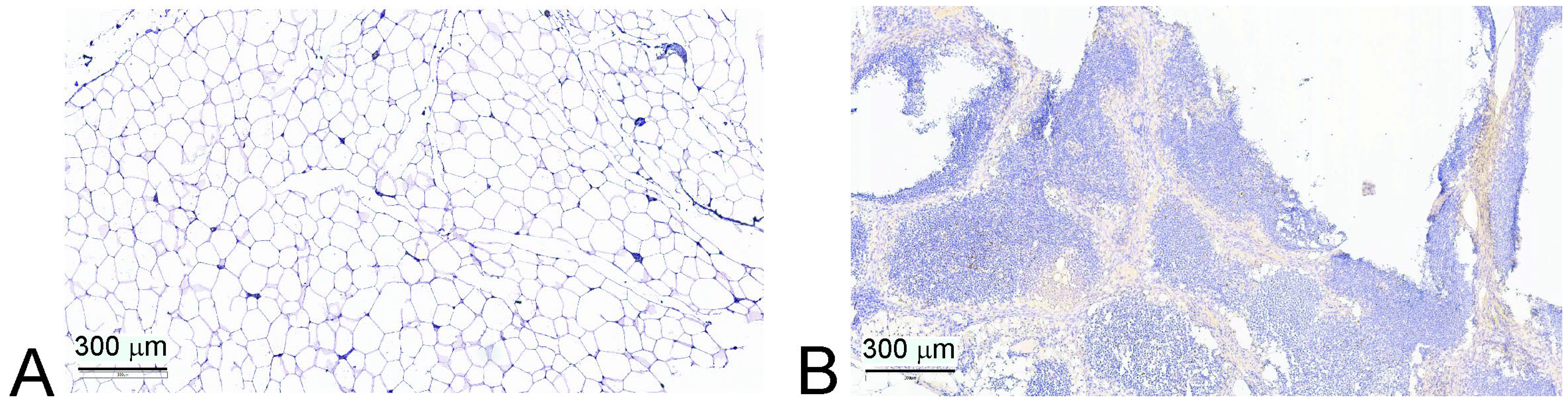 - Kologrivova, I.V.; Dmitriukov, A.A.; Naryzhnaya, N.V.; Koshelskaya, O.A.; Kharitonova, O.A.; Vyrostkova, A.I.; Evtushenko, V.V.; Krapivina, A.S.; Riabchenko, P.E.; Suslova, T.E. Lymphocyte subsets in epicardial, thymic and subcutaneous adipose tissue during advanced coronary atherosclerosis in patients with coronary artery disease. Russ. J. Immunol. 2024, 27, 243–252. [Google Scholar] [CrossRef]