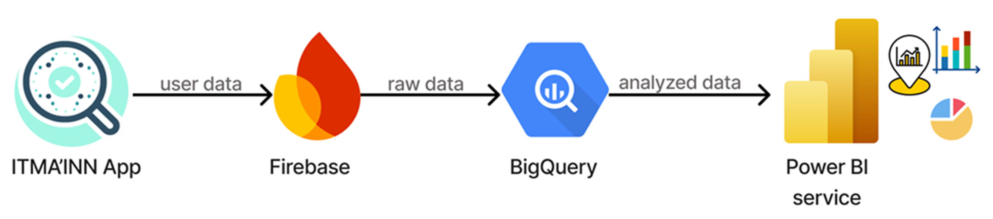 - Data flows through established enterprise platforms (Firebase, Google BigQuery, Power BI), as shown in Figure 4;