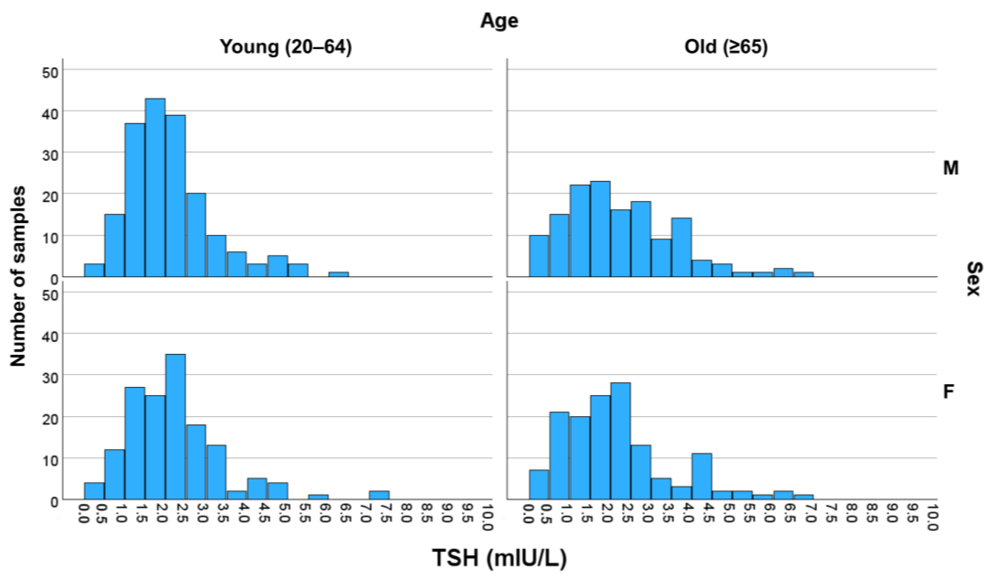 5. Yamada, S.; Horiguchi, K.; Akuzawa, M.; Sakamaki, K.; Yamada, E.; Ozawa, A.; Kobayashi, I.; Shimomura, Y.; Okamoto, Y.; Andou, T.; et al. The Impact of Age- and Sex-Specific Reference Ranges for Serum Thyrotropin and Free Thyroxine on the Diagnosis of Subclinical Thyroid Dysfunction: A Multicenter Study from Japan. Thyroid 2023, 33, 428–439. [Google Scholar] [CrossRef]