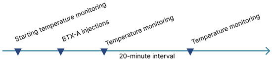 - Ferreira, J.E.V.; da Silva, M.C.S.; Sousa, R.P.R.; Marinho-Vieira, L.E.; Silva, D.F.B.; Lacerda-Santos, J.T.; de Melo, D.P. Influence of the cosmetic use of botulinum toxin type a on temperature measurements using infrared thermography. Arch. Dermatol. Res. 2025, 317, 639. [Google Scholar] [CrossRef]