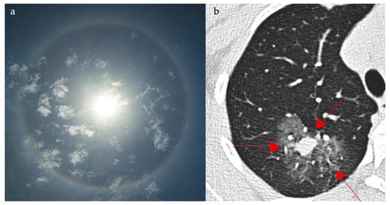 - Pinto, P. The CT Halo Sign. Radiology 2004, 230, 109–110. [Google Scholar] [CrossRef] [PubMed]