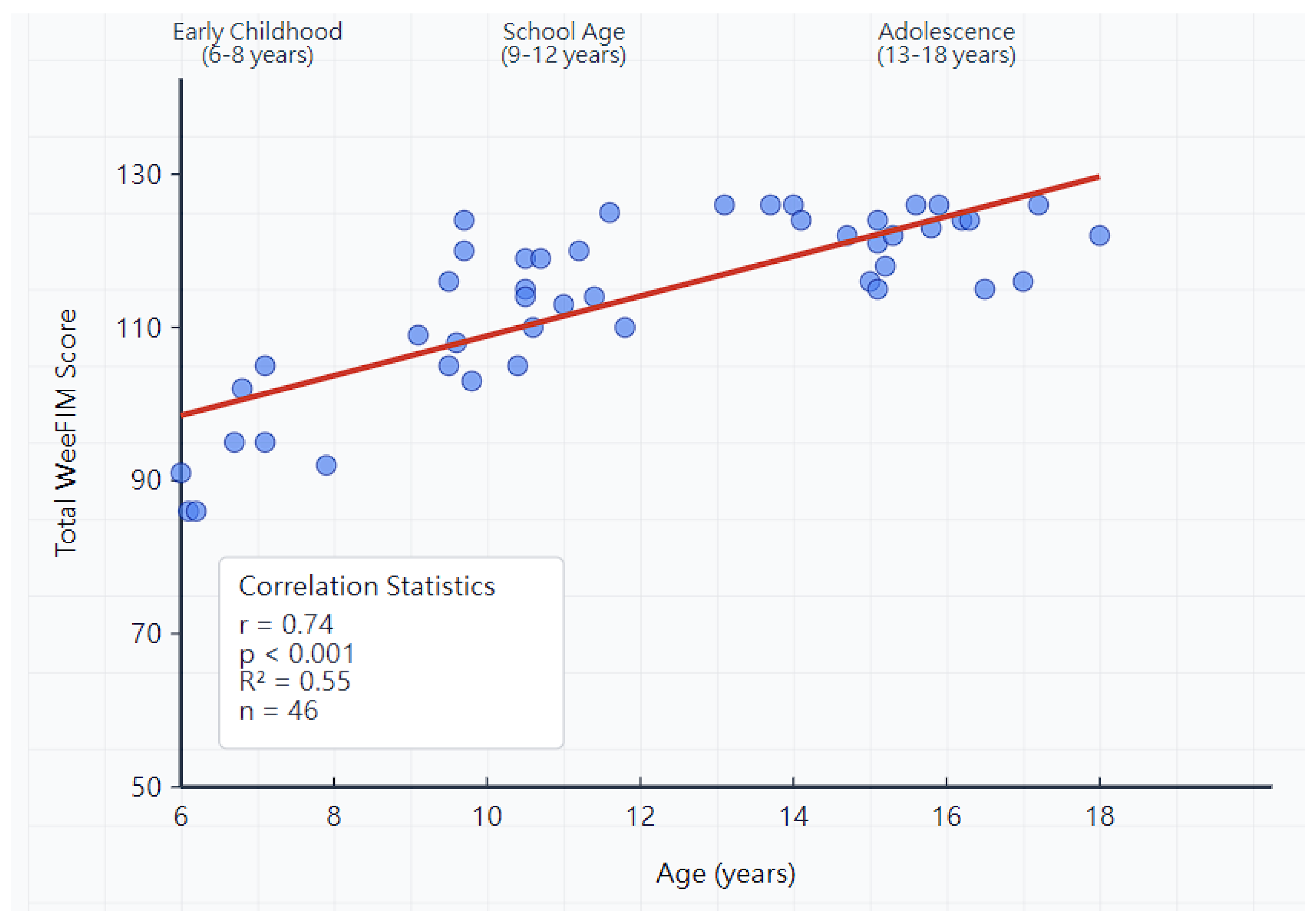 | Age Group | n | Self-Care | Mobility | Cognition | Total WeeFIM |
