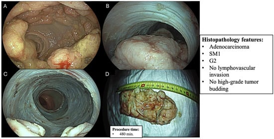 - Kuroki, Y.; Hoteya, S.; Mitani, T.; Yamashita, S.; Kikuchi, D.; Fujimoto, A.; Matsui, A.; Nakamura, M.; Nishida, N.; Iizuka, T.; et al. Endoscopic submucosal dissection for residual/locally recurrent lesions after endoscopic therapy for colorectal tumors. J. Gastroenterol. Hepatol. 2010, 25, 1747–1753. [Google Scholar] [CrossRef] [PubMed]
