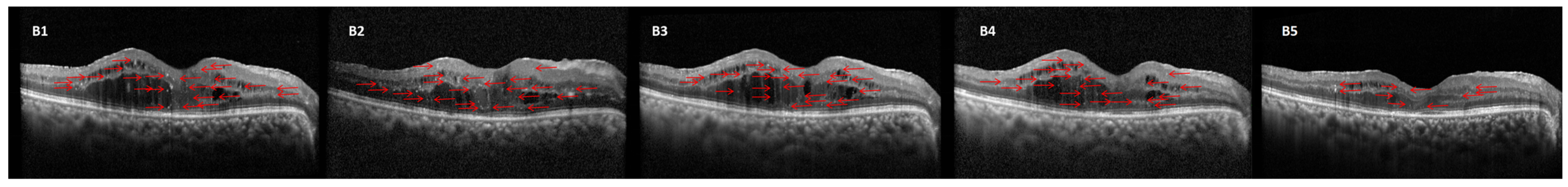 - von Schulthess, E.L.; Maunz, A.; Chakravarthy, U.; Holekamp, N.; Pauleikhoff, D.; Patel, K.; Bachmeier, I.; Yu, S.; Cohen, Y.; Scherb, M.P.; et al. Intraretinal Hyper-Reflective Foci Are Almost Universally Present and Co-Localize With Intraretinal Fluid in Diabetic Macular Edema. Investig. Ophthalmol. Vis. Sci. 2024, 65, 26. [Google Scholar] [CrossRef]